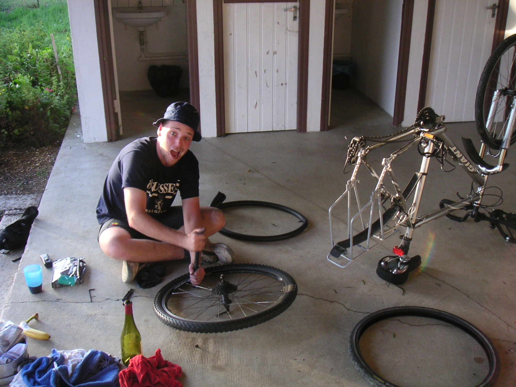 Petites réparations aux sanitaires squattés pour la nuit.